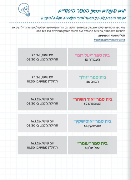 שים לב היום הפתוח בבית ספר עומר בשעה 10:30